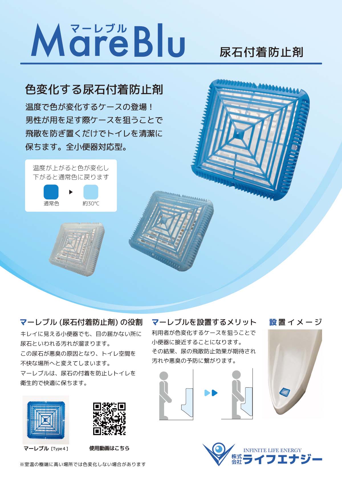 尿石付着防止剤 MareBluマーレブル 温度で色が変化 尿 飛散 尿石 悪臭 防止 男性用 男子 トイレ 小便器 衛生的 清潔