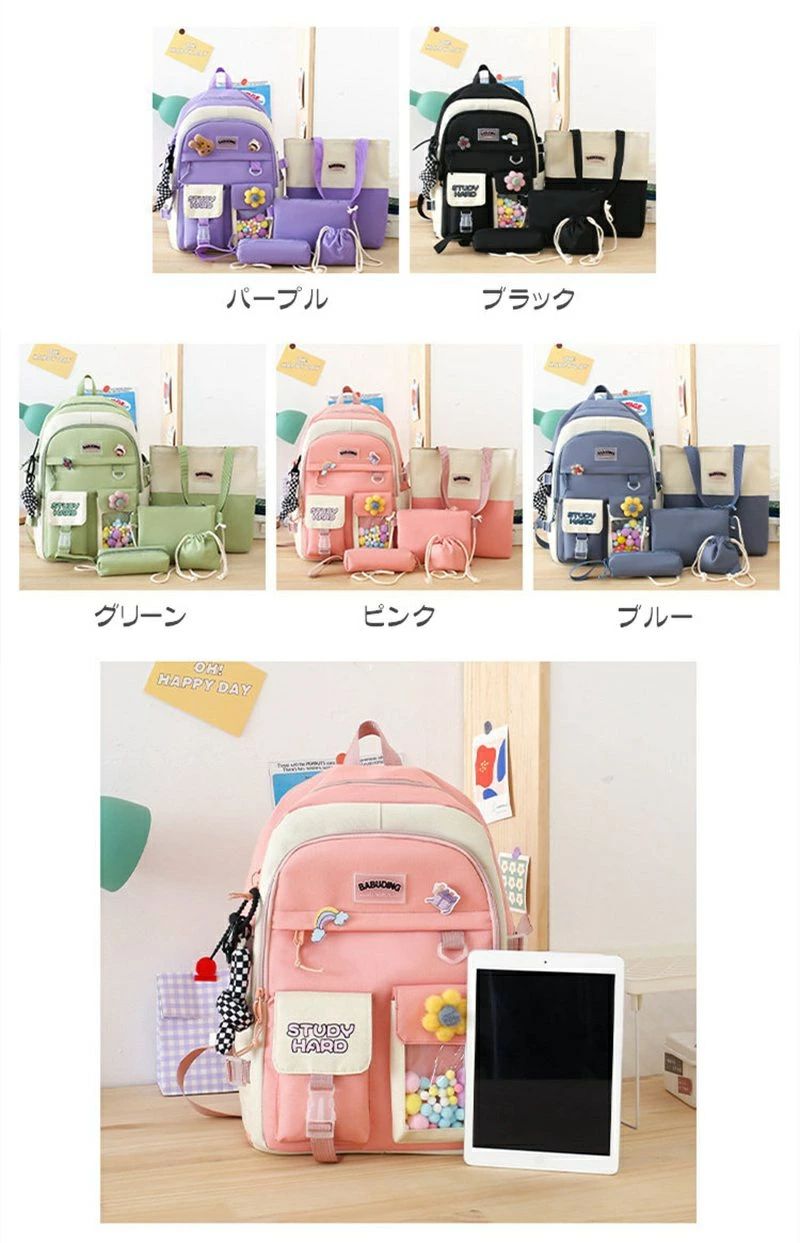 A4 ハンドバッグ バックパック 撥水 女の子 レディース 中学生 小学生 通学 大容量 リュックサック 5点セット