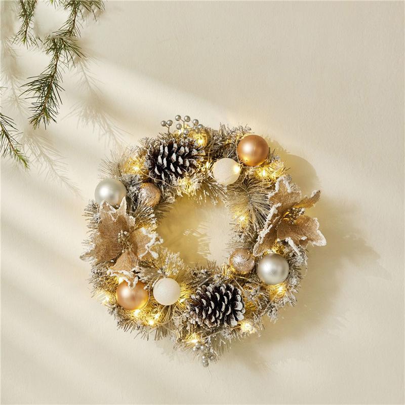 クリスマスリース 花輪 LED クリスマス リース 飾り インテリア 壁掛け おしゃれ 造花 部屋 プレゼント ギフト 贈り物 北欧 上品 高級 豪華