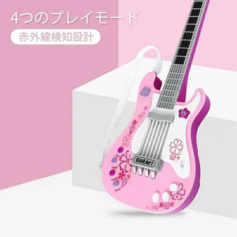 キッズ ギター 楽器玩具 エレキギター ミニギター ギター玩具 子供用 おもちゃ ミニギター ライト付き クリスマスプレゼント 靭性 耐食性 耐高温性 4つのプレイモード 6歳以上 素晴らしい贈り物 4色 女の子プレゼント 男の子プレゼント
