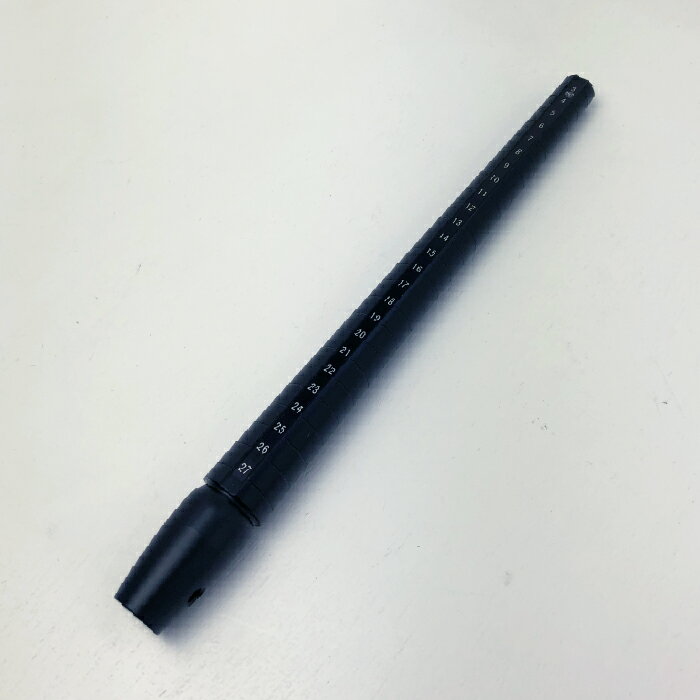 ・サイズ :246×21×21(mm) ・対応サイズ :3号~27号 ・素材:プラスチック ・カラー:ブラック ・モニターの発色具合によって実際のものと色が異なる場合があります。 プラスチックサイズ棒(大) #3~#27ジュエリーを取り扱う上で必需品のリングサイズ棒。4~23号のサイズが確認可能。