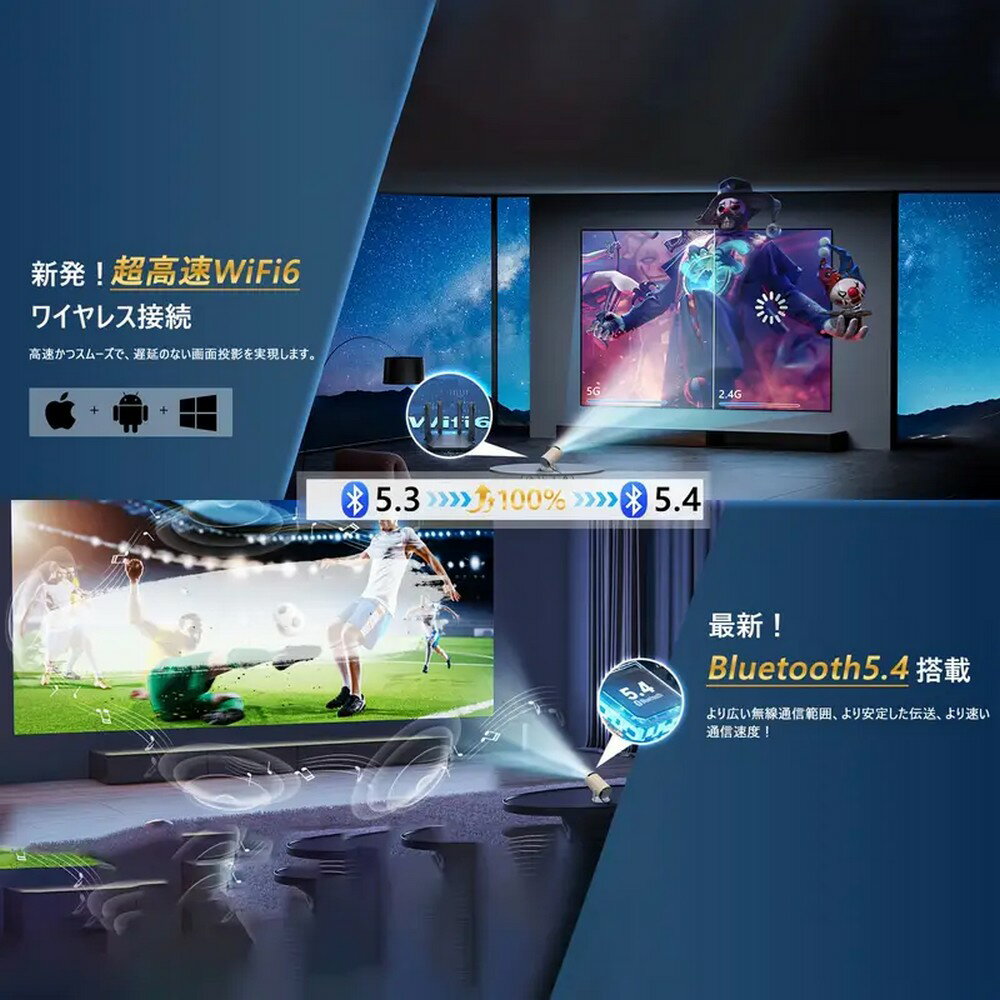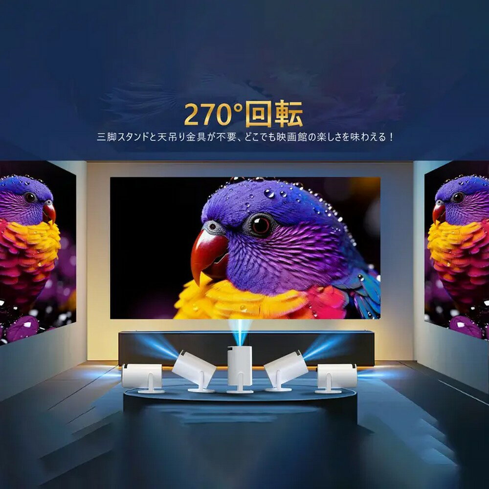 プロジェクター 小型 Android TV搭載 220lm高輝度 270°回転 天井投影 Wi-Fi6接続 Bluetooth5.4 自動台形補正 1080P&4K対応 内蔵HiFiスピーカー 一体型スタンド付き 短距離投影機能 50%ズーム IOS Android PC PS4 Switch互換