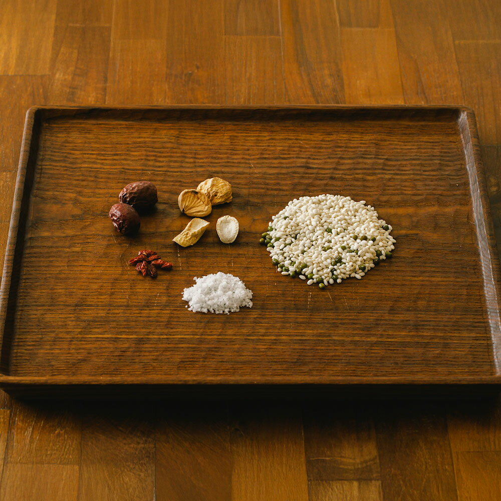 博淑屋参鶏湯(サムゲタン)キット 用意するのは手羽元だけ! 本格薬膳スープ「参鶏湯」をおうちで簡単に。 「博淑屋 参鶏湯キット」は本場韓国で使われているこだわりの薬膳を一つにまとめたサムゲタン調理キットです。参鶏湯(サムゲタン)とは韓国の伝統料理。若鶏にもち米やナツメ、高麗人参などを詰めて煮込んだ料理で、薬膳料理やスタミナ料理ともされています。家庭で作るにはなかなか敷居が高いサムゲタンですが、このキットなら簡単にご自宅で美味しいサムゲタンがお楽しみ頂けます。手羽元など、お好みの鶏肉を約600gご用意頂くだけでOK!キットに入っている和漢食材や穀物と一緒に1時間半ほど煮込めば、旨味たっぷりスープの出来上がり。ご自身や大切な方に。労りの気持ちを添えてじっくり煮込んでみてくださいね。 女性にうれしい和漢食材を詰め込みました 参鶏湯には欠かせない和漢素材。自分で用意するのは難しいけれど、このキットがあれば大丈夫! 本場韓国で使われているこだわりの和漢素材を詰め込みました。 「もち米玄米・緑豆・栗」「クコの実・ナツメ・高麗人参」「仕上げの塩」がそれぞれ3つの袋に分かれて入っています。 クコの実、ナツメ、高麗人参の袋に入っている「乾燥剤」は食べられません。誤ってお鍋に入れないようご注意ください。 【クコの実】杏仁豆腐にのっている、 甘酸っぱい赤い実というイメージが強いクコの実。あの世界三大美女の一人である楊貴妃も毎日かかさず食べていたとか。【ナツメ】昔から健康や美容に役立つ和漢素材として幅広く活用されている果実です。女性にうれしい栄養素を幅広く含んでいて、女性特有の悩みにぴったりの素材です。 【高麗人参】オタネニンジンというウコギ科の植物の根っこを乾燥させたもの。優れた滋養食として知られ、東洋の健康法の中でながく大切にされてきた素材です。【緑豆】日本では緑豆もやしとして知られる、ヤエナリの種子。ミネラルや食物繊維も豊富で古くから滋養食として使用されてきました。【栗】馴染みのある食材ですが、栄養価が高く、和漢食材としても活用されています。【もち米玄米】未精米のもち米のこと。糠(ぬか)がついているのでその栄養をまるごと摂取できます。愛知県日進市産「こはるもち玄米」を使用しています。【天日塩】味付けの決めてとなる塩は韓国のチョンラムド地方の天日塩。「サムゲタンにもっともあう塩」と言われており、鉄分、カリウムなどを豊富に含みます。 用意するのは手羽元だけ! 本品1袋と手羽元をご用意ください。手羽元600g(10〜12本)で3〜4人分のサムゲタンが作れます。 基本の作り方 【1】クコの実・ナツメ・高麗人参、もち米玄米・緑豆・栗、手羽元600g、お好みでニンニク1〜3片(無くても良い)、水1.5リットルを鍋に入れて強火にかける。【2】沸騰しアクが浮いてきたら取り除く。 中弱火(コトコトするくらい)に火を下とし、つねに具材が水をかぶっているように水を足しながら1時間〜1時間半ほど煮込む。【3】塩を加えて味を整える。鶏肉がほろほろと柔らかく、もち米がふっくらしたら出来上がり。※塩は少しずつ加えて味を調整して下さい。 ★こんなアレンジも!★ ◎仕上げにたっぷりのネギやニンニクスライスをプラス!◎スープのシメにフォーをいれて コトコト煮込んで、栄養満点のスープを大切な方に。 博淑屋の代表である、井口佐矢香さん。彼女がこのサムゲタンキットをつくろうと思ったきっかけは2つあります。韓国出身の両親のもとで育ち、幼い頃から大好きだったお母さんの参鶏湯の味をたくさんの方に知って欲しいと思ったことが一つ。二つ目は肺がんを患って亡くなったお父さんが晩年、井口さんが作った参鶏湯を食べて日々を繋いでくれたこと。この経験から、ただ美味しい、健康になるというだけではなく、同じように困っている人の一助になればと井口さんは考えています。ご自身や大切な方に。「おつかれさま」「ありがとう」「大丈夫?」、そんな労りの気持ちを添えてじっくり煮込んでみてはいかがでしょうか。 3個セットはこちら。 博淑屋(はくしゅくや) 大切なあの人がいつまでも元気でいてくれること。それこそが何よりも自分にとってうれしいこと…。けれどもそう気づくのに人は時間がかかります。ついつい今の健康を過信してしまい、好ましくない食生活や生活習慣を見直すことを忘れてしまいます。でも、手軽に身体にいいものを取り込むことができたら、今からでも後々の後悔を避けることができるかもしれません。そのためにも、どうぞ、博淑屋の「参鶏湯」を日々の食生活の習慣に。 同ブランド別のアイテムはこちら その他「フェムケア フード」はこちら SPEC 商品名:博淑屋 参鶏湯(サムゲタン)キット 名称:参鶏湯キット 内容量:63g 原材料:ナツメ、高麗人参、クコの実、もち米玄米(国産)、緑豆、栗、天日塩 栄養成分表示(1袋57.8g当たり):熱量:182.1kcal たんぱく質:5.4g 脂質:1.0g 炭水化物:37.7g 食塩相当量:6.0g 