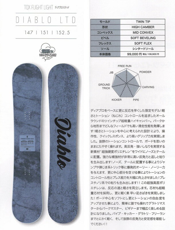 TORQREX SNOWBOARDS [ TQX FLIGHT LIGHT DIABLO LTD @99000] トルクレックス ディアブロ リミテッド スノーボード 【正規代理店商品】【送料無料】