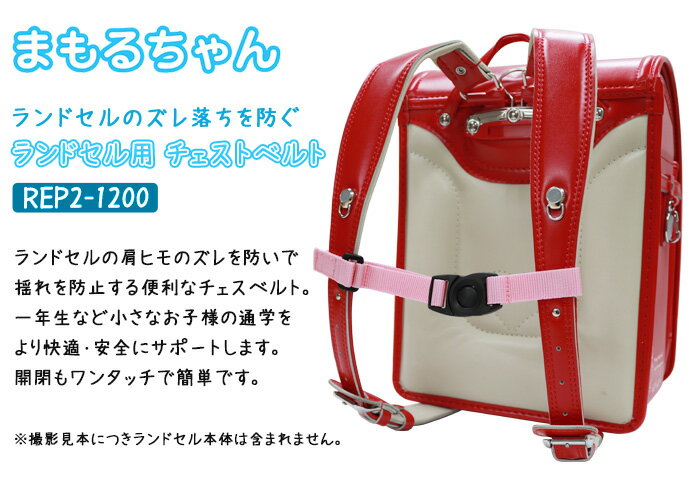 ランドセルのズレ落ち防止 チェストベルト ワンタッチバックル付き ランドセル用 ハーネス まもるちゃん REP2-1200 全6色 日本製【男の子/女の子/肩紐/ストラップ/通学/フロントストラップ/ブラック/ブラウン/ブルー/レッド/ピンク/パープル】