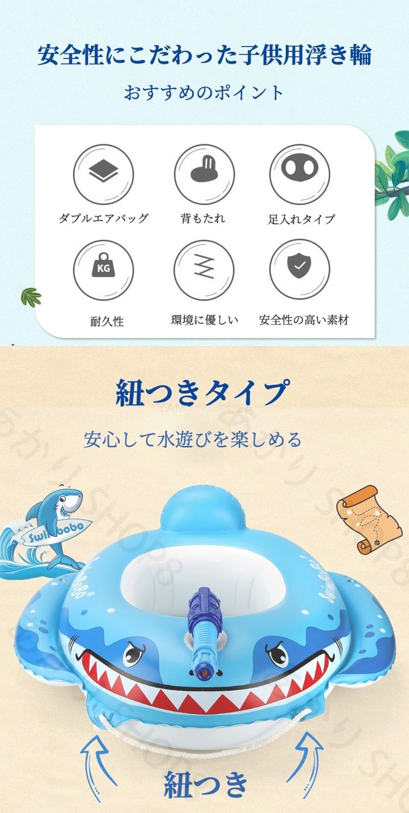 【水鉄炮搭載】 浮き輪 子ども 可愛い サメ 赤ちゃん 浮き輪 ベビー浮き輪 浮き輪 SNS映え 水遊び用 スイミング 可愛い うきわ おもちゃ 水遊び 1-4歳適用