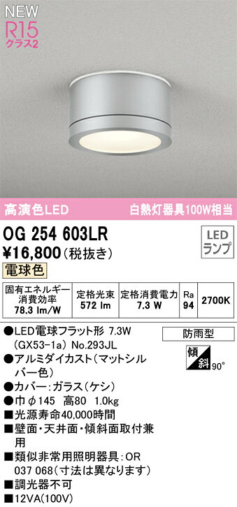 【仕様】●メーカー:オーデリック/ODELIC●型番:OG254603LR●JANコード:4549727055352●軒下シーリング●白熱灯器具100W相当●電球色●2700K●防雨型【ご注意】※寿命は、全光束が初期の70%となる時間です。寿命は設計値であり、保証値ではありません。