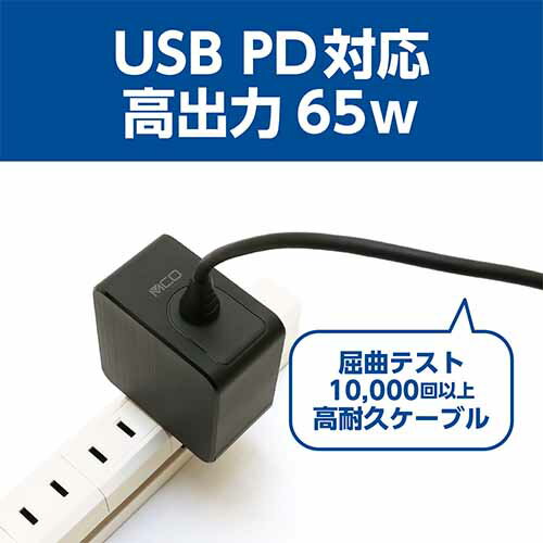 MCO ミヨシ GaN 小型 IPA-GC15AN PD65W USB Type-C ACアダプター ケーブル一体型 高速充電 AC100V〜240V 海外対応【送料無料c】usb type c PD65W AC-DC charger