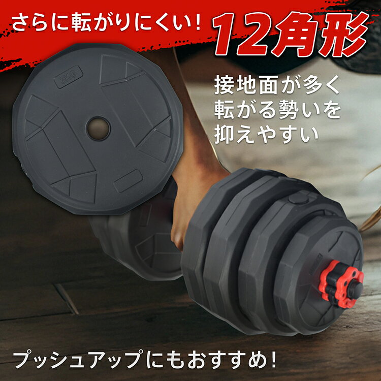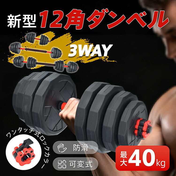 *20%OFFクーポン⇒4856円*【送料無料】ダンベルセット 40kg 20kg 2個セット 12角 プレート 可変式 バーベル ダンベル セット 防滑 負荷調節 重量変更 3way 滑りにくい 筋トレ 筋肉 運動 トレーニング ジム 自宅 家トレ de174