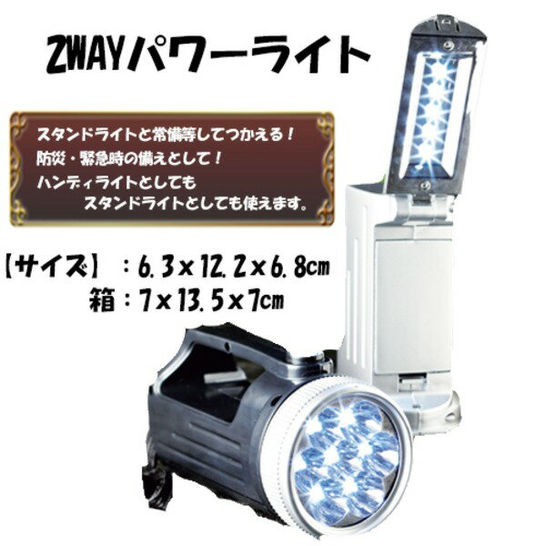 ■商品内容【ご注意事項】この商品は下記内容×100個セットでお届けします。・2WAYパワーライト【商品説明】ハンディライトとしてもスタンドライトとしても使えます。パワフルなライトです。防災・緊急時の備えとして是非。■2色アソートシルバー&ブラック、ブラック&シルバー■商品スペック【サイズ】6.3x12.2x6.8cm 箱:7x13.5x7cm【材質】ABS樹脂・PS【生産国】中国【備考】単3電池3本使用(別売)【セット内容】ブラック50個/シルバー50個(計100個セット)■送料・配送についての注意事項●本商品の出荷目安は【1 - 4営業日 ※土日・祝除く】となります。●お取り寄せ商品のため、稀にご注文入れ違い等により欠品・遅延となる場合がございます。●本商品は仕入元より配送となるため、沖縄・離島への配送はできません。[ PL-113 ]