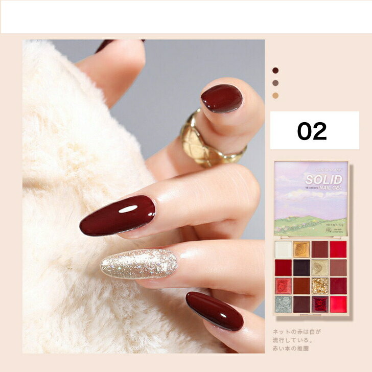 固形ジェルネイル YouTube 話題沸騰中 ブラシ1本付き ソリッドジェルパレット 16色 カラージェル 景品ブラシ1本付き セルフネイル 可愛いパッケージ マスターカラーマッチング 好きな色