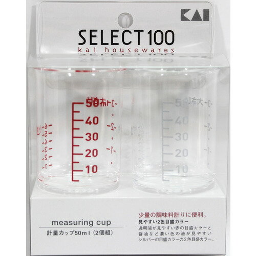 貝印 DH3111 セレクト100 計量カップ50ml 2個組 ●機能とデザインを極限にまで追求した本格的調理道具。【仕様】サイズ:幅88×奥行44×高59mm材質:メタクリル樹脂原産国:日本