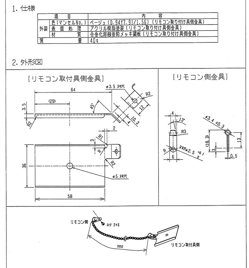 三菱 ルームエアコン 霧ヶ峰用 リモコン紛失防止用金具セット(5台分入り) MAC230FB