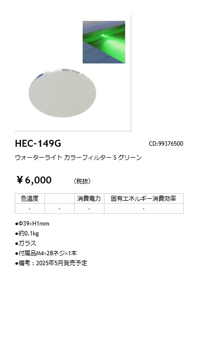 こちらの商品は外箱を開封された場合、返品交換を承ることは出来かねます。(不良商品の場合は除く) 商品の品番・仕様等を充分にご確認頂いた上でご注文ください。 メーカー: タカショー / タカショーデジテック TAKASHO DIGITEC タカショー ウォーターライト カラーフィルター SHEC-149G