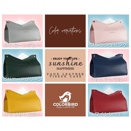 COLORBIRD フェイクレザー ティッシュケース sunshine LT1 おしゃれ 北欧 インテリア ウェットティッシュ ペーパータオルケース (ビリヤードグリーン) フェイクレザーティッシュケース。ティッシュを驚異的な豪華さに! 高品質フェイクレザーを使用し 熟考されつくしたデザインにより、揺るぎない存在感と重厚感さえ感じるほどの大人の雰囲気を演出します。 リビングから寝室、メイク室、車、オフィス、各ショップ、ホテルなど驚くほど上質に演出します。レザー表面は簡易防水、防汚加工がされており、キッチン、洗面化粧台との相性も良い。 ティッシュケース以外にもキッチンペーパー、マスクケース、小物収納としてもご活用いただけます。 【サイズ】13x15x22cm 【素材】フェイクレザー ※エコティッシュ用のコンパクトサイズ。ボックスティッシュは入りませんのでご注意下さい。 ※モニタ-により商品との色差がある場合があります。 商品コード57078220487商品名COLORBIRD フェイクレザー ティッシュケース sunshine LT1 おしゃれ 北欧 インテリア ウェットティッシュ ペーパータオルケース (ビリヤードグリーン)型番レザー ティッシュケーサイズエコティッシュ用カラービリヤードグリーン※他モールでも併売しているため、タイミングによって在庫切れの可能性がございます。その際は、別途ご連絡させていただきます。※他モールでも併売しているため、タイミングによって在庫切れの可能性がございます。その際は、別途ご連絡させていただきます。