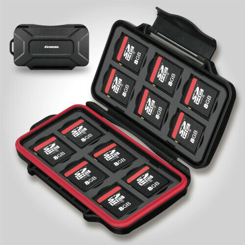ハクバ HAKUBA ハードメモリーカードケース SD12 (SD/microSDカード用) 各12枚ずつ収納 レッド 耐衝撃 防塵 防滴 ABS樹脂製 シリコン製パッキン DMC-22SD12RD 4977187371567