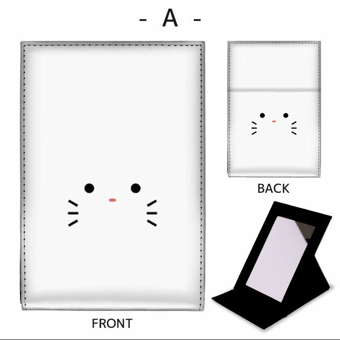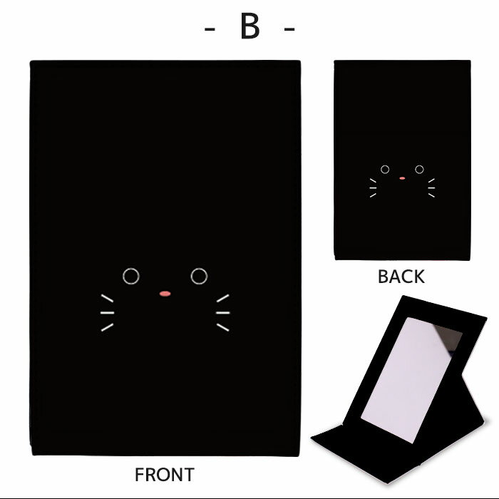 折りたたみ ミラー 卓上ミラー 鏡 メイク直し 手鏡 コンパクトミラー オリジナルデザイン 化粧鏡 お洒落 スタンドミラー 置き鏡 レザー 顔 三毛猫 スコティッシュフォールド 黒猫