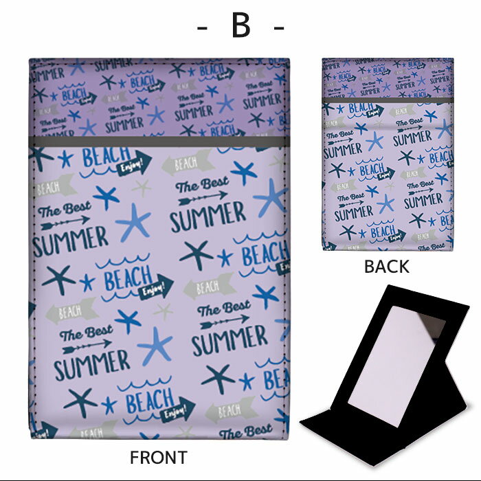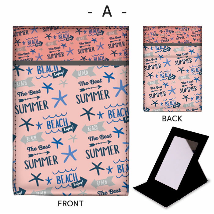 折りたたみ ミラー 卓上ミラー 鏡 メイク直し 手鏡 コンパクトミラー オリジナルデザイン 化粧鏡 お洒落 スタンドミラー 置き鏡 レザー ポップ サマー beach テキスタイル