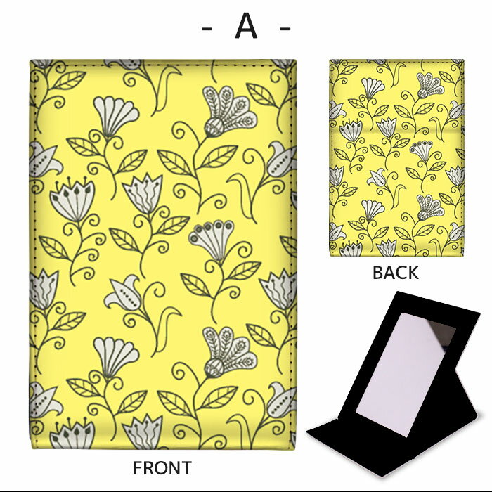 折りたたみ ミラー 卓上ミラー 鏡 メイク直し 手鏡 コンパクトミラー オリジナルデザイン 化粧鏡 お洒落 スタンドミラー 置き鏡 レザー 花柄 ラインアート かわいい シンプル