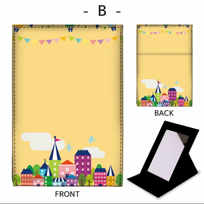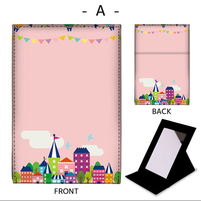 折りたたみ ミラー 卓上ミラー 鏡 メイク直し 手鏡 コンパクトミラー オリジナルデザイン 化粧鏡 お洒落 スタンドミラー 置き鏡 レザー フラッグ 旗 カラフル 雲
