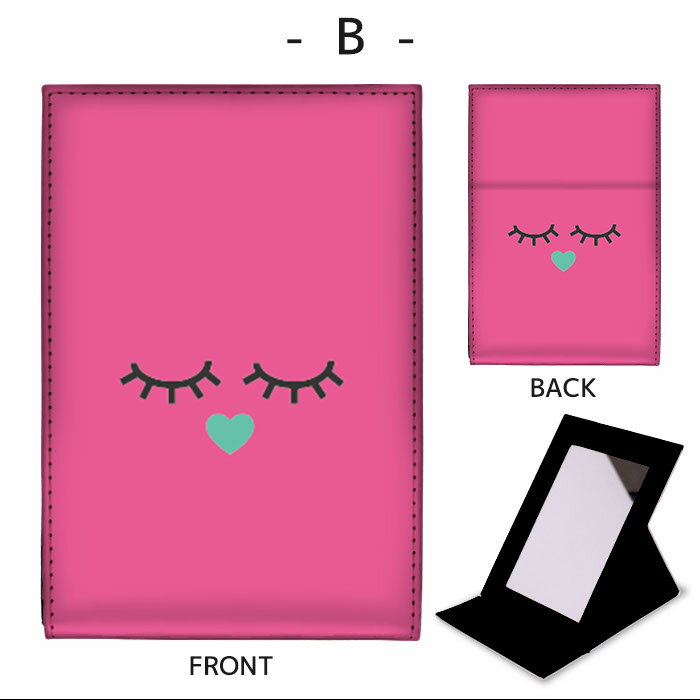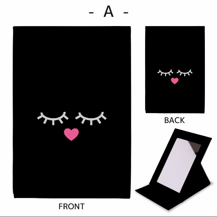 折りたたみ ミラー 卓上ミラー 鏡 メイク直し 手鏡 コンパクトミラー オリジナルデザイン 化粧鏡 お洒落 スタンドミラー 置き鏡 レザー ワンポイント おんなのこ イラスト 女子