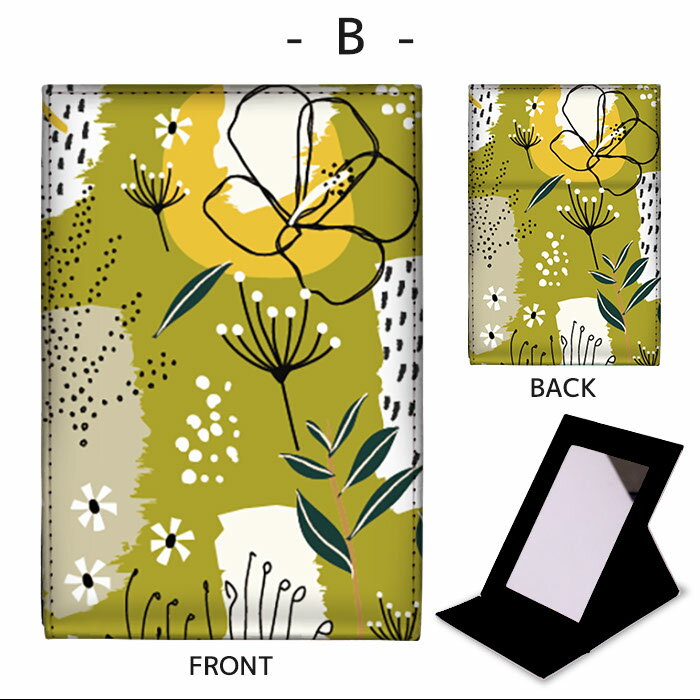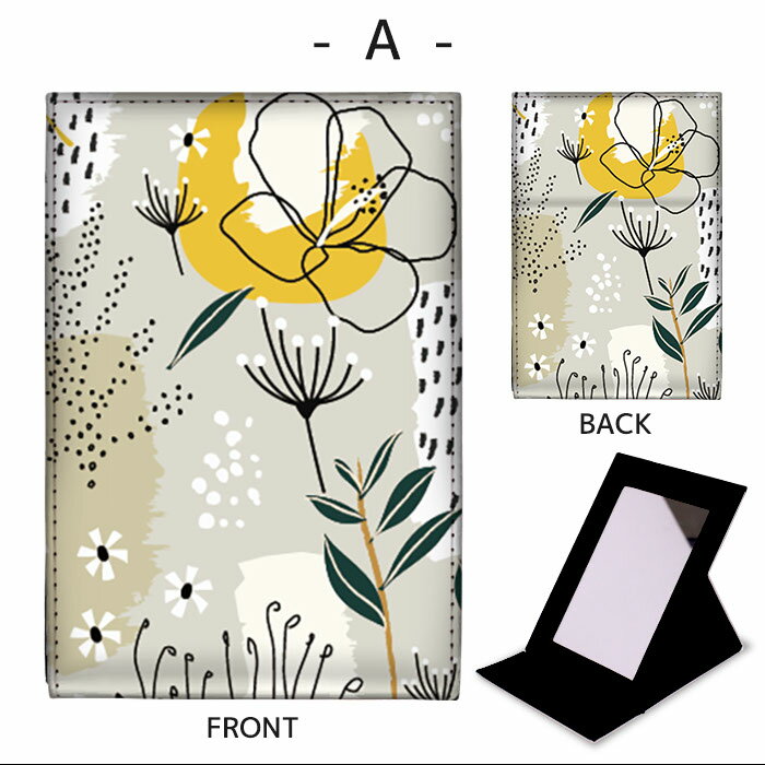 折りたたみ ミラー 卓上ミラー 鏡 メイク直し 手鏡 コンパクトミラー オリジナルデザイン 化粧鏡 お洒落 スタンドミラー 置き鏡 レザー 花柄