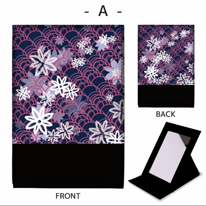 折りたたみ ミラー 卓上ミラー 鏡 メイク直し 手鏡 コンパクトミラー オリジナルデザイン 化粧鏡 お洒落 スタンドミラー 置き鏡 レザー 和柄 着物風 紅葉 和風 古風