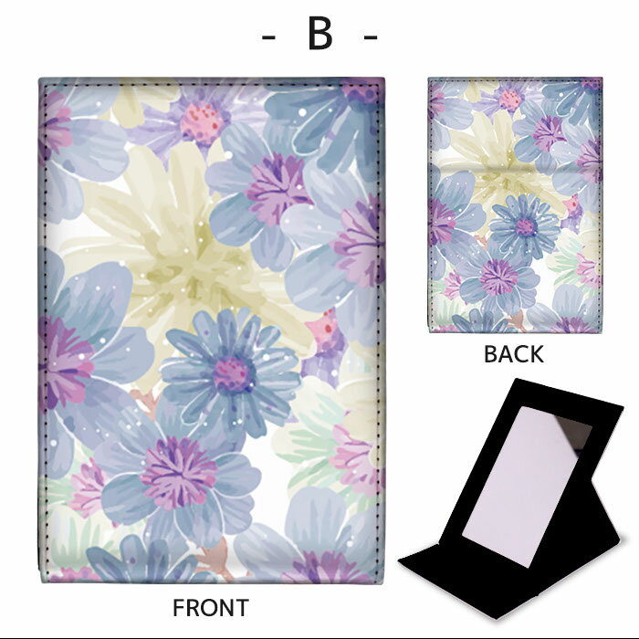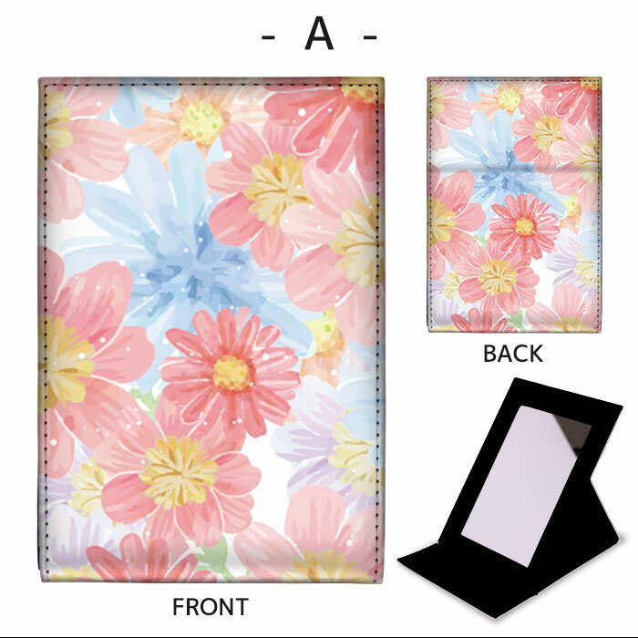 折りたたみ ミラー 卓上ミラー 鏡 メイク直し 手鏡 コンパクトミラー オリジナルデザイン 化粧鏡 お洒落 スタンドミラー 置き鏡 レザー フラワー flower 水彩風 カラフル