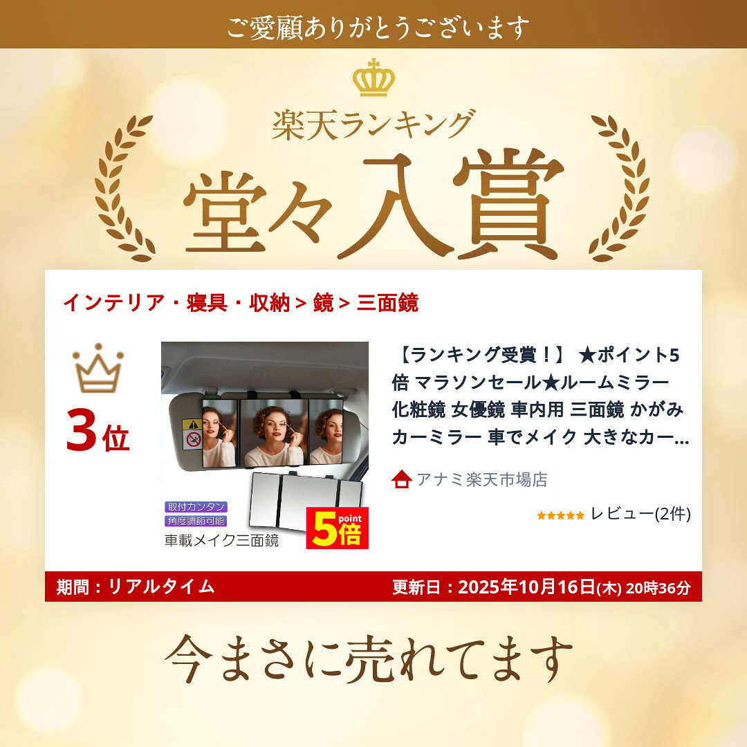 ★期間限定ポイント5倍★ルームミラー 化粧鏡 女優鏡 車内用 三面鏡 かがみ カーミラー 車でメイク 大きなカーミラー 車でメイク三面鏡 メイクミラー クルマでメイク三面鏡 サンバイザー カンタン取付け 化粧ミラー 化粧用ミラー ハンズフリ