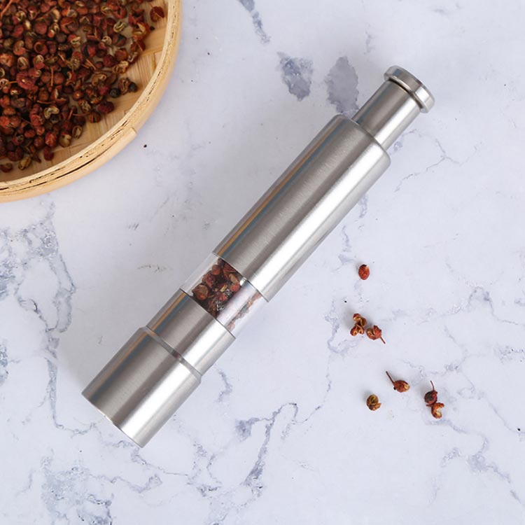 楽しく片手で操作出来る丁度いいサイズのミル。スタイリッシュなデザインなので置くだけでキッチンや食卓の雰囲気がガラッと変わります。コショウと結晶塩のどちらにも対応したマルチミルです。女性の手の大きさでも操作がしやすいサイズです。手が汚れている時でも片手で塩コショウが使えてとても便利です。残量が分かりやすいようにキャビンが透明になっているので補充がしやすいです。炒め物など、スピード勝負の時に中身が無かったなんて心配もありません。 サイズ150×27.5mmサイズについての説明150×27.5mm 180g素材ステンレス アクリル色ステンレス備考 ●サイズ詳細等の測り方はスタッフ間で統一、徹底はしておりますが、実寸は商品によって若干の誤差(1cm〜3cm )がある場合がございますので、予めご了承ください。●製造ロットにより、細部形状の違いや、同色でも色味に多少の誤差が生じます。●パッケージは改良のため予告なく仕様を変更する場合があります。▼商品の色は、撮影時の光や、お客様のモニターの色具合などにより、実際の商品と異なる場合がございます。あらかじめ、ご了承ください。▼生地の特性上、やや匂いが強く感じられるものもございます。数日のご使用や陰干しなどで気になる匂いはほとんど感じられなくなります。▼同じ商品でも生産時期により形やサイズ、カラーに多少の誤差が生じる場合もございます。▼他店舗でも在庫を共有して販売をしている為、受注後欠品となる場合もございます。予め、ご了承お願い申し上げます。▼出荷前に全て検品を行っておりますが、万が一商品に不具合があった場合は、お問い合わせフォームまたはメールよりご連絡頂けます様お願い申し上げます。速やかに対応致しますのでご安心ください。