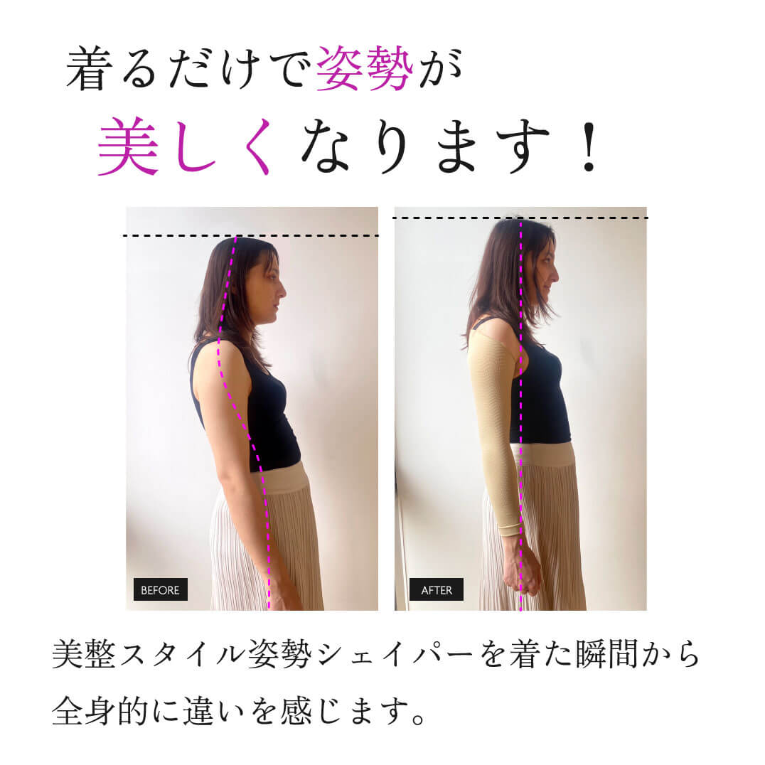 美姿勢二の腕シェイパー / 着圧 サポーター 猫背 巻き肩 シェイプ 痩せ 引き締め 姿勢 補正 背筋 アームシェイパー 二の腕サポーター 肩甲骨 猫背補正ベルト 姿勢補正 女性用 アームカバー インナー スリムフェザー 矯正 インナー 美姿勢 美腕 着るだけで美腕 腕たるみ