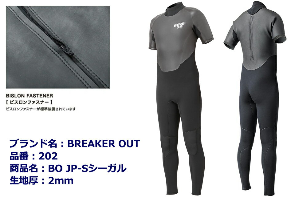 BREAKER OUT ブレーカーアウト シーガル #202 2ミリサーフィン 2mm ウェットスーツ スキン ウエットスーツSUP ウェイクボード バックジップ