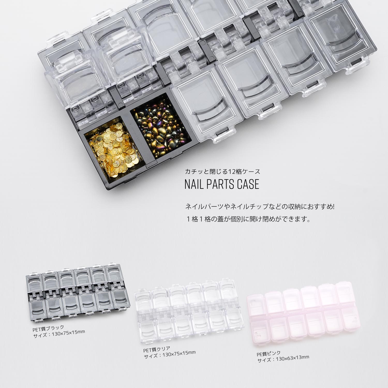 特徴 ・ネイルパーツやネイルチップなどの収納におすすめ! ・1格1格の蓋が個別に開け閉めができます。 内容量 6個入り 仕様 PET質ブラック サイズ:130×75×15mm サイズは手作業で測って入るため 多少誤差がございます。ご了承ください。 商品説明 12個の仕切りとカチッと閉じるフタが付いた、収納ケース6セットが登場しました!クリアとブラックの2色展開で、使いやすさとスタイリッシュさを両立しています。フタをカチッと閉めれば、中のデコパーツがしっかり保護され、しかも一目で中身が分かる透明仕様。使い勝手と見た目の両面からこだわった逸品です。 収納ケースのこのアイテムなら、パーツや小さなアクセサリーなど、細々したものをきれいに収納できます。12個の仕切りで分けられるから、整理整頓がラクラク。また、フタをカチッと閉じる音は、安心感をもたらします。デスク周りやネイルアート用品の整理にぴったりで、使いやすさとスタイリッシュなデザインで、ユーザーの心を掴んで離しません。 生産地 MADE IN CHINA ご注意 ・多少のキズ、ホコリ、バリ、クモリなどある場合がございます。 ・メール便での発送は1セットまでです。2セットからは宅急便へ変更して発送いたします。 ご了承の上、お求めください。 関連ワード ・多少のキズ、ホコリ、バリ、クモリなどある場合がございます。 ・メール便での発送は1セットまでです。2セットからは宅急便へ変更して発送いたします。 ご了承の上、お求めください。