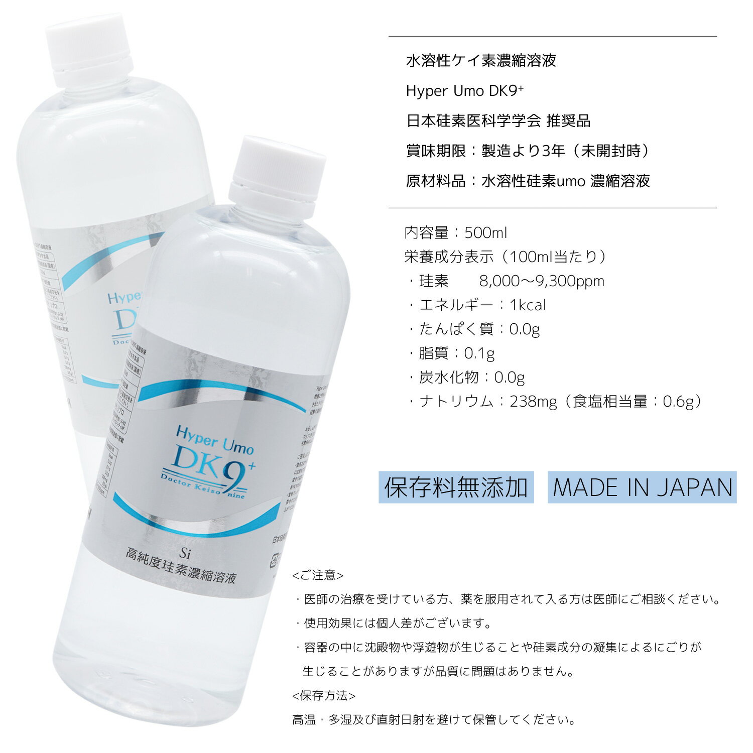 [500ml 3本入] 水溶性ケイ素濃縮溶液ハイパーumo 500ml / 硅素 Si シリカ しりか Hyper Umo DK9+ 日本硅素医科学学会 推奨品 ケイ素 ウモ 保存料無添加 プレゼント おまけ あり 抗酸化力 油分解力 コラーゲン 骨 髪 肌 血管 美爪 ペット ミネラル サプリ 健康食品