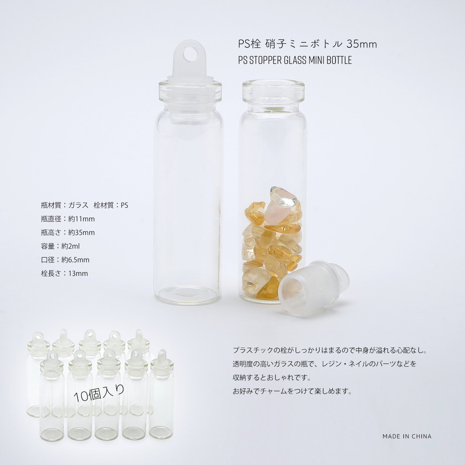 PS栓 硝子 ミニボトル 10個入り 35mm (返品交換不可) アクセサリー チャーム ガラス小瓶 ハンドメイド 透明 レジン 材料 パーツ アンティーク雑貨 レジンクラフト キーホルダー ストラップ ミニチュア アクセサリー資材 素材 材料 資材 コルク栓 絞り口タイプ