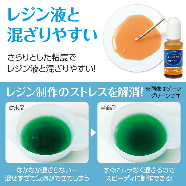 Artecレジン着色剤 透明色 10ml スイートオレンジ鮮やかな発色!混ぜて楽しむレジン用着色剤!商品説明鮮やかな発色と高い透明感を兼ね備えたレジン着色剤です。さらりとした低粘度でレジン液になじみやすく、ムラになりにくい仕上がりが特徴。少量でもしっかりと色づき、混色も自由自在です。時間が経っても色あせにくく、美しい色合いを長くキープ。ホワイトを加えれば、不透明カラーの調整も簡単に行えます。透明感のある作品からしっかりとしたカラー表現まで、アクセサリーやキーホルダーなど、さまざまなレジンクラフトにおすすめの着色剤です。検索キーワードレジン着色剤 クリアカラー 透明色 スイートオレンジ 10ml レジン液用 高濃度顔料 混色可能 変色しにくい 透明発色 不透明調整 アクセサリー制作 ハンドメイド UVレジン対応 手作りキット ジュエリークラフト クラフト用塗料ディレクトリID566881注意ー商品サイズ10mlセット内容本体のみ1個重量(g)17材質合成樹脂、有機溶剤1個梱包形態ヘッダー付き袋入り1個梱包サイズ横(mm)90品番58671JANコード4521718586717■ ご注意 ■・ ご注文のタイミングにより、納期がかかる、又は完売などの場合もございます。・ 商品の情報/詳細、画像について保証は致しかねます。・ 画像はイメージです。商品以外が含まれる、又は商品と異なる場合があります。・ 必ずメーカーホームページなど合わせてご確認ください。・ ご注文確定後のキャンセル・返品・交換は出来かねます。・ 北海道、沖縄、その他離島は配送致しかねます。不具合対応、交換対応のお問い合わせは、下記専用の窓口へご連絡をお願いします。アーテック 電話:072-990-5656 (平日9-18時・土曜9-15時:日曜と祝日はお休みです)