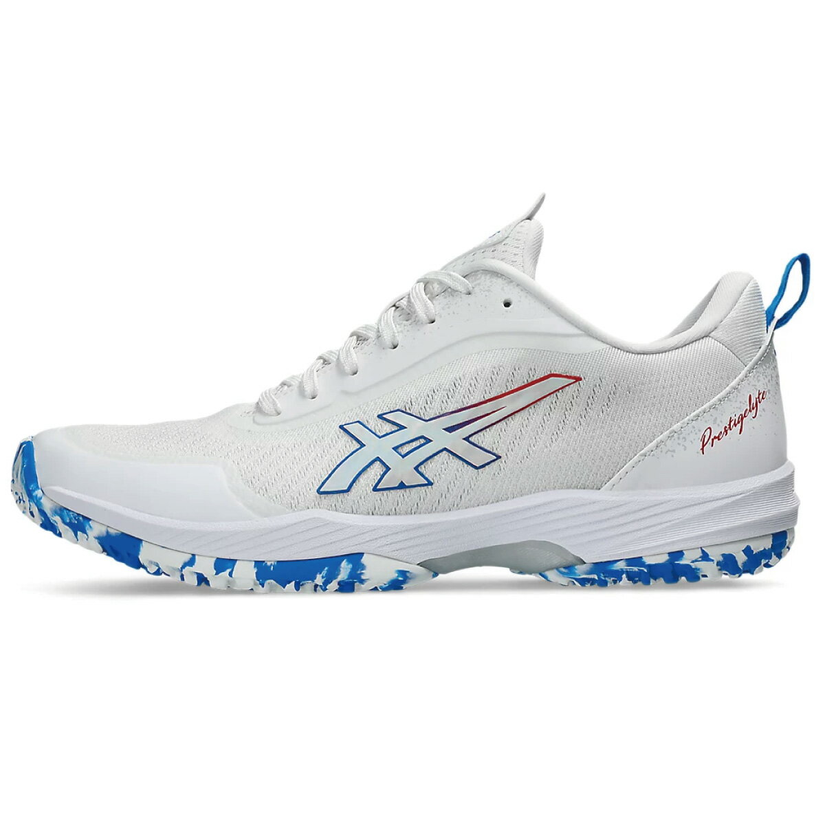 【ポイントUP】ASICS プレステージライト 5 オムニ・クレー WIDE 1043A022-101 2025SS ユニセックス テニス シューズ アシックス PRESTIGELYTE 5 OC ホワイト×エレクトリックブルー ワイド
