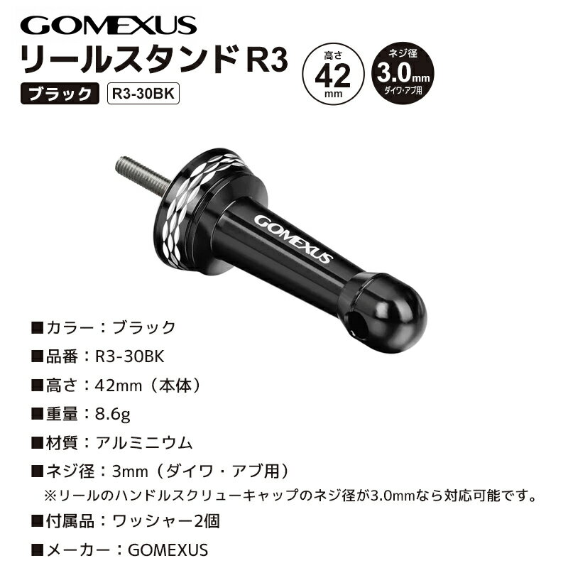 ゴメクサス リールスタンド 釣り R3-30BK ブラック 高さ42mm ネジ径3mm アルミ製 リールカスタムパーツ GOMEXUS