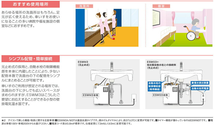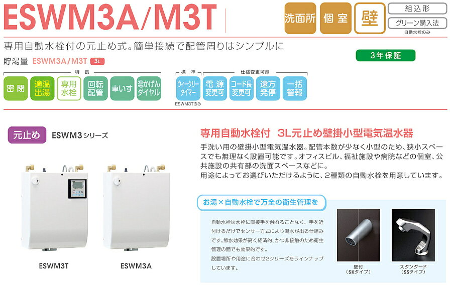 ESWM3ASS206C0 イトミック 小型電気温水器 専用自動水栓付(スタンダード) 壁掛型 元止め式 貯湯量3L 単相200V