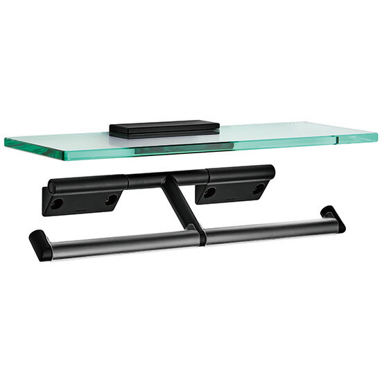 カワジュン 紙巻器 SE-50M-A01-003 ガラスシェルフ ペーパーカバー無 材質:亜鉛ダイキャスト+ガラス+ポリカーボネート 仕上:マットブラック 耐荷重:49N(5kgf)●お届けに4週間以上かかる場合がございます。