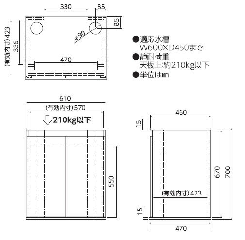 こちらの商品は「大型商品」のため送料とは別途大型料金500円を頂戴しております。 ご注文後に改めて合計金額のご連絡いたしますので、あらかじめご了承ください。 また、こちらの商品は「お取り寄せ」となります。 約2・3日前後での発送となりますが、メーカー欠品の場合はお時間をいただく可能性がございます。 あらかじめご了承の上、ご注文ください。 メーカー:KOTOBUKI コトブキ工芸 落ち着いた木目調のブラック、ブラウンと、インテリアに馴染みやすいホワイト。 お部屋の雰囲気に合わせて選ぶ事が出来るカラーバリエーション。 耐震性や、耐荷重への考慮はもちろん、背面をOPENにする事で、 ホースやコードの出し入れを簡単にし、ろ過槽設置やオーバーフロー配管も考慮した内部空間となっています。 サイズ:W610×D470×H700mm 適応水槽:W600×D450mm(静耐荷重:210kg以下)までこちらの商品は「大型商品」のため送料とは別途大型料金500円を頂戴しております。 ご注文後に改めて合計金額のご連絡いたしますので、あらかじめご了承ください。 また、こちらの商品は「お取り寄せ」となります。 約2・3日前後での発送となりますが、メーカー欠品の場合はお時間をいただく可能性がございます。 あらかじめご了承の上、ご注文ください。 メーカー:KOTOBUKI コトブキ工芸 落ち着いた木目調のブラック、ブラウンと、インテリアに馴染みやすいホワイト。 お部屋の雰囲気に合わせて選ぶ事が出来るカラーバリエーション。 耐震性や、耐荷重への考慮はもちろん、背面をOPENにする事で、 ホースやコードの出し入れを簡単にし、ろ過槽設置やオーバーフロー配管も考慮した内部空間となっています。 サイズ:W610×D470×H700mm 適応水槽:W600×D450mm(静耐荷重:210kg以下)まで
