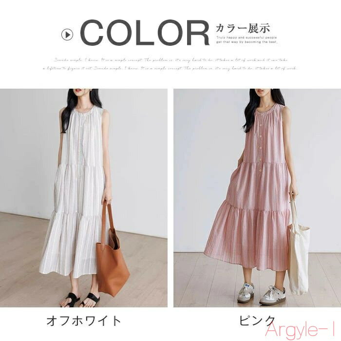 【長期不在・住所不明の返送につきまして】 発送しました商品が、長期不在・宛先不明・受取拒否など、その他いかなる理由により、ご注文のお荷物が弊社に返送された場合、 弊社が負担した往復送料及び手数料(一律2,200円)をご請求させて頂きますので、何卒ご注意くださいませ。 【沖縄、離島への発送】 沖縄、離島地域は追加送料がかかります。予めご了承くださいませ。 【納品書・領収書について】 弊社では業務のペーパーレス化の推進のため、明細書及び納品書を発行しておりません。 商品の明細は、Eメールにてお知らせしていますので、ご確認ください。 納品書・領収書が必要な場合は、お手数とは思いますが、ご注文後当店までご連絡下さいますようお願い申し上げます。カラー オフホワイト ピンク(写真参照) ※お客様ご使用のPC環境により商品画像のカラーが多少異なる場合があります。仕入時期により多少デザインなど異なる場合があります。ご了承ください。 サイズ(CM) S :着丈116 バスト96 肩幅36 M :着丈117 バスト100 肩幅37 L :着丈118 バスト104 肩幅38 ※サイズは人の手によって測っているため、1-3cmの誤差がある場合がございます。予めご了承下さいませ。 素材 ポリエステル 生産国 中国 キーワード ティアード ワンピース 夏 ロング ノースリーブ レディース ストライプ 総柄 ノースリーブワンピース ロングワンピース 夏ワンピース タンクトップワンピース ロング丈 フレア ティアード バンドカラー 大人 可愛い きれいめ おしゃれ aライン フェミニン 上質 上品 送料無料 20代 30代 40代 50代