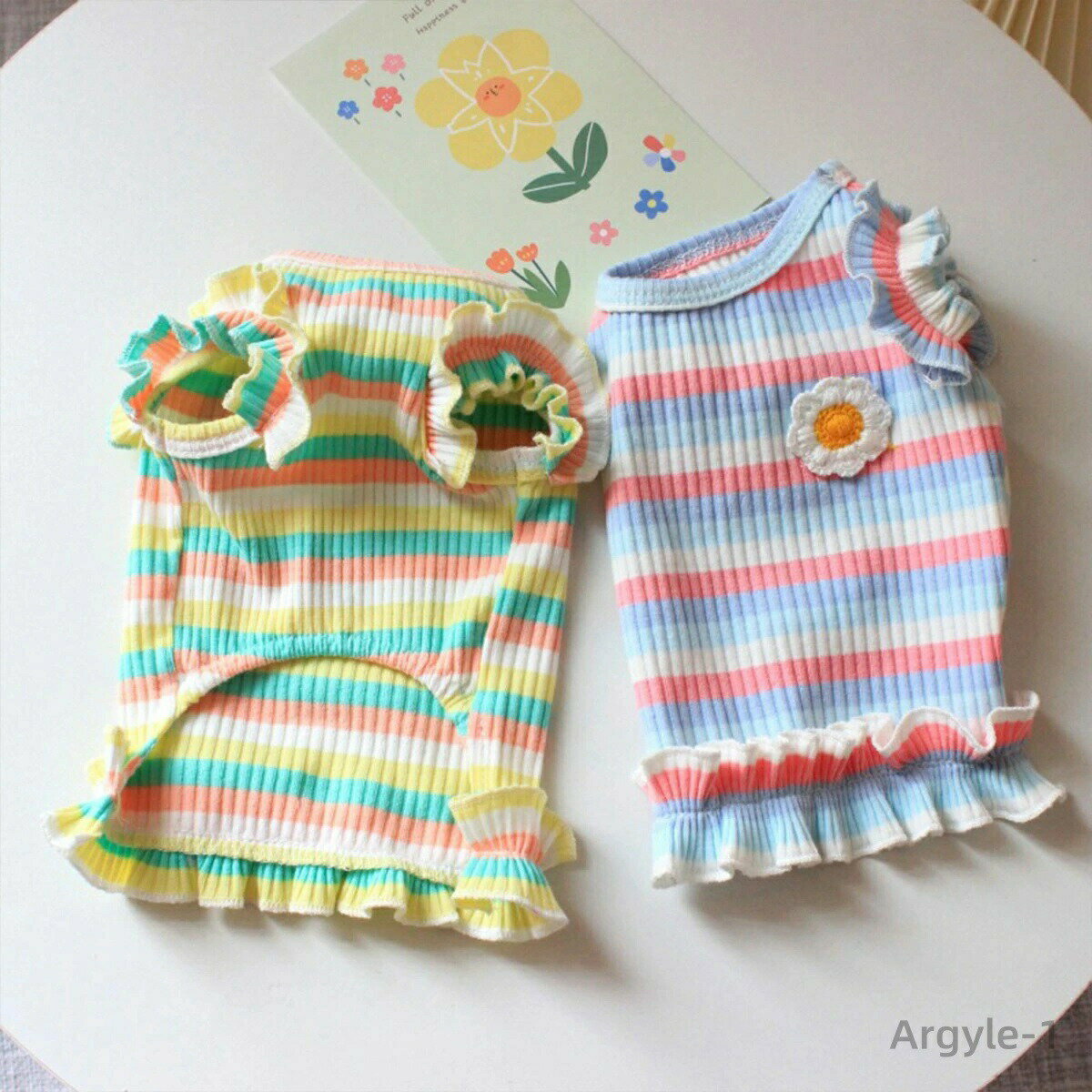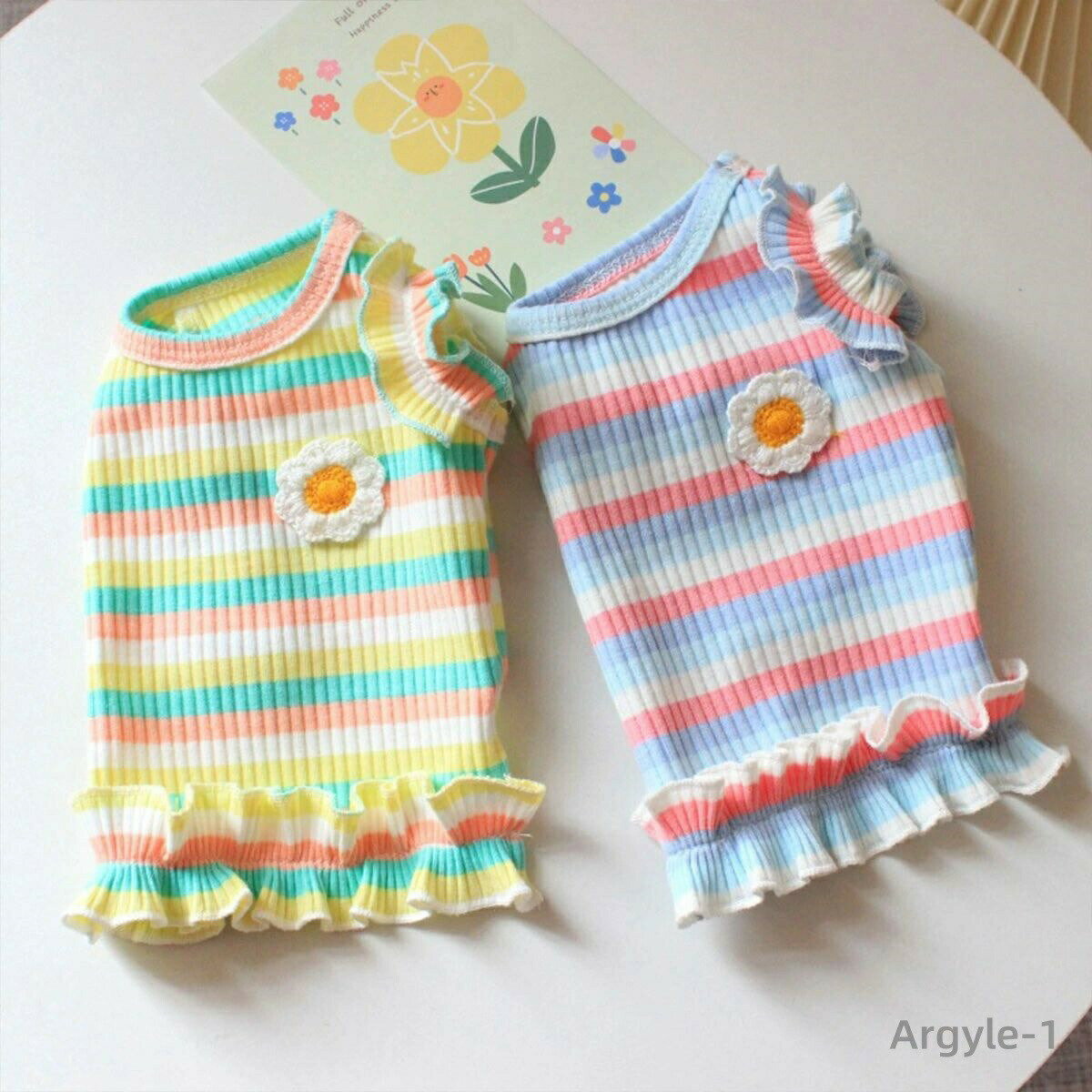 【送料無料】犬 服 ワンピース 春夏 かわいい 女の子 犬服 いぬ 犬の服 マルチボーダー柄 フリル 袖なし ノースリーブ 春 夏 スカート