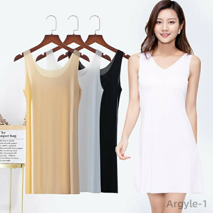 【送料無料】タンクトップワンピース キャミソール ロング スリップインナー シームレス ペチコート 極薄 ひんやり 冷感 冷感インナー 透け防止 接触冷感 静電気防止 薄手