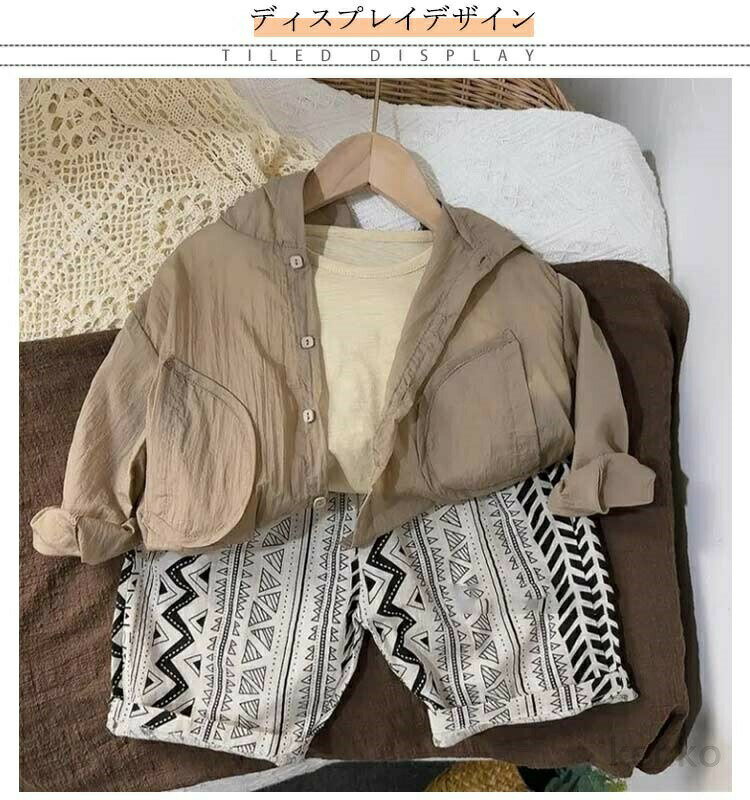 さっと羽織るだけでUV対策ができる長袖パーカー!汗をかいてもベタつかない!サラッと快適素材。肌をドライに保ち、蒸れにくく、肌にやさしいソフトな仕上がりです。伸縮性に優れたストレッチ素材で動きやすい。汗を吸い取り、通気性にも優れています。薄手の生地で小さくたためて持ち運びにも便利。ビーチへのお出かけに最適。快適な着心地でヘビロテ間違いなしのアイテムです! サイズ 80 90 100 110 120 130 サイズについての説明 80:着丈34cm バスト73cm 袖丈39cm/ 90:着丈37cm バスト77cm 袖丈42cm/ 100:着丈40cm バスト81cm 袖丈45cm/ 110:着丈43cm バスト85cm 袖丈48cm/ 120:着丈46cm バスト89cm 袖丈51cm/ 130:着丈49cm バスト93cm 袖丈54cm/ ※サイズ表の実寸法は商品によって1-3cm程度の誤差がある場合がございます。 素材 ポリエステル 色 アイボリー コーヒー グリーン 備考 ●サイズ詳細等の測り方はスタッフ間で統一、徹底はしておりますが、実寸は商品によって若干の誤差(1cm〜3cm )がある場合がございますので、予めご了承ください。 ●商品の色は、撮影時の光や、お客様のモニターの色具合などにより、実際の商品と異なる場合がございます。あらかじめ、ご了承ください。 ●製品によっては、生地の特性上、洗濯時に縮む場合がございますので洗濯時はご注意下さいませ。 ▼色味の強い製品によっては他の衣類などに色移りする場合もございますので、速やかに(脱水、乾燥等)するようにお願いいたします。 ▼生地によっては摩擦や汗、雨などで濡れた時は、他の製品に移染する恐れがございますので、着用の際はご注意下さい。 ▼生地の特性上、やや匂いが強く感じられるものもございます。数日のご使用や陰干しなどで気になる匂いはほとんど感じられなくなります。