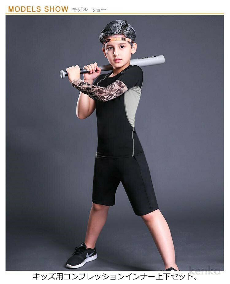【送料無料】秋 2点 バスケットボール タイツ コンプレッションウェア 吸汗速乾 冬 セット スポーツ キッズ用 ウェア アンダーシャツ 上下セット 長袖 インナー ゴルフ