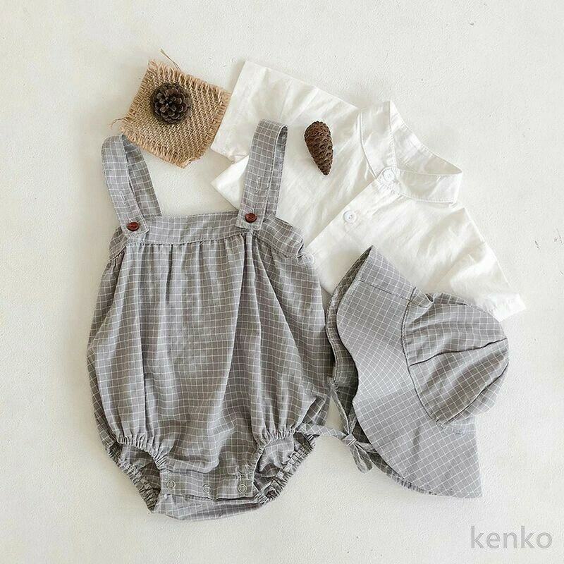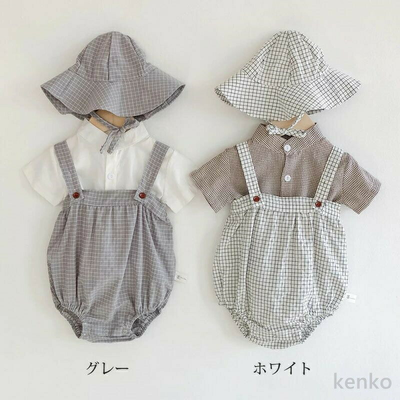 【送料無料】子供服 ベビー服 女の子 ロンパース サロペット カバーオール チェック柄 ロンパース 帽子 シャツ 3点セット 赤ちゃん用 子ども服 ベビー 新生児 出産祝い ガールズ
