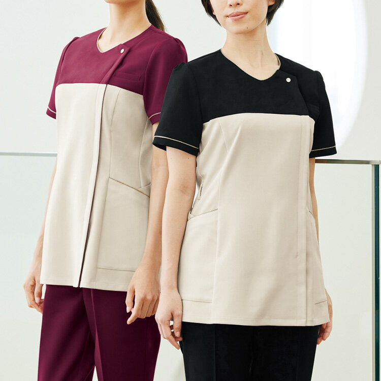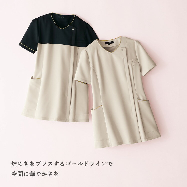 アンジョア レディース 半袖 チュニック スクラブ ジップジャケット ストレッチ 吸汗速乾 高通気 施術 ユニフォーム 制服 事務服 接客 サロン 美容系 医療系 エステ ネイルサロンクリニック OL オフィス ビジネス ジョア 42051 ホームクリーニング enjoie joie