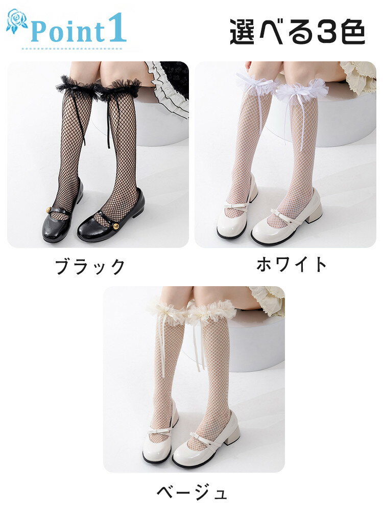 ハイソックス レディース ロリータ メッシュ レースソックス フリル リボン ソックス セット 靴下 可愛い お洒落 美脚 透け感 夏用 秋 くつ下 伸縮性 通気性 おそろい ドレス用 コスプレ ゴスロリ 姫系 地雷系 発表会 結婚式 パーティー ダンス衣装 仮装 薄手 白 黒 ベージュ