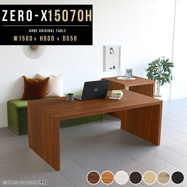 カフェテーブル 四角 リビング ダイニング パソコンデスク テーブル おしゃれ 150cm コの字 高さ60cm ソファテーブル 高め パソコンテーブル キッチン 長方形 一人暮らし 木製 ブラウン コの字ラック つくえ ホワイト 台 リビングテーブル PCデスク 幅150cm 奥行き75cm ☆